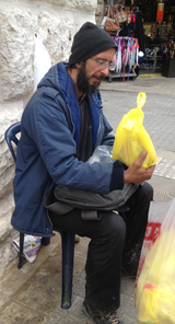 Last Monday after finishing food deliveries to the homeless/poor on Jerusalem's downtown streets, I stopped at Noah's sidewalk cafe for a coffee - which is something of a tradition when the food delivery is complete, for us and for volunteers who may help out. As I sat there in the sunshine, a gentleman approached me and said, "Excuse me - you're a Christian, aren't you", his Russian-accented words being more of a statement than a question. (Note: It is illegal for Christians to identify themselves as such, or to mention Jesus/Yeshua, while actually handing out food, as to do so can be deemed proselytising, with the food being the inducement for people to listen. In this case, however, I was no longer handing out food and was simply answering a question.)